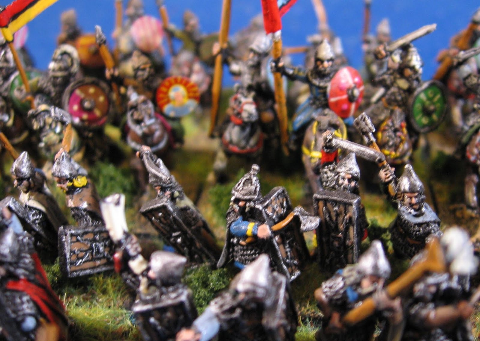 Up next: I'm working away on 15mm Carthaginians (assembled, primed and painting is underway). Need to get some more glue to affix the shields though. And I'm puttering on some 28mm skeletons for HoTT--experimenting with washes over a white primer coat to get a washed out look.