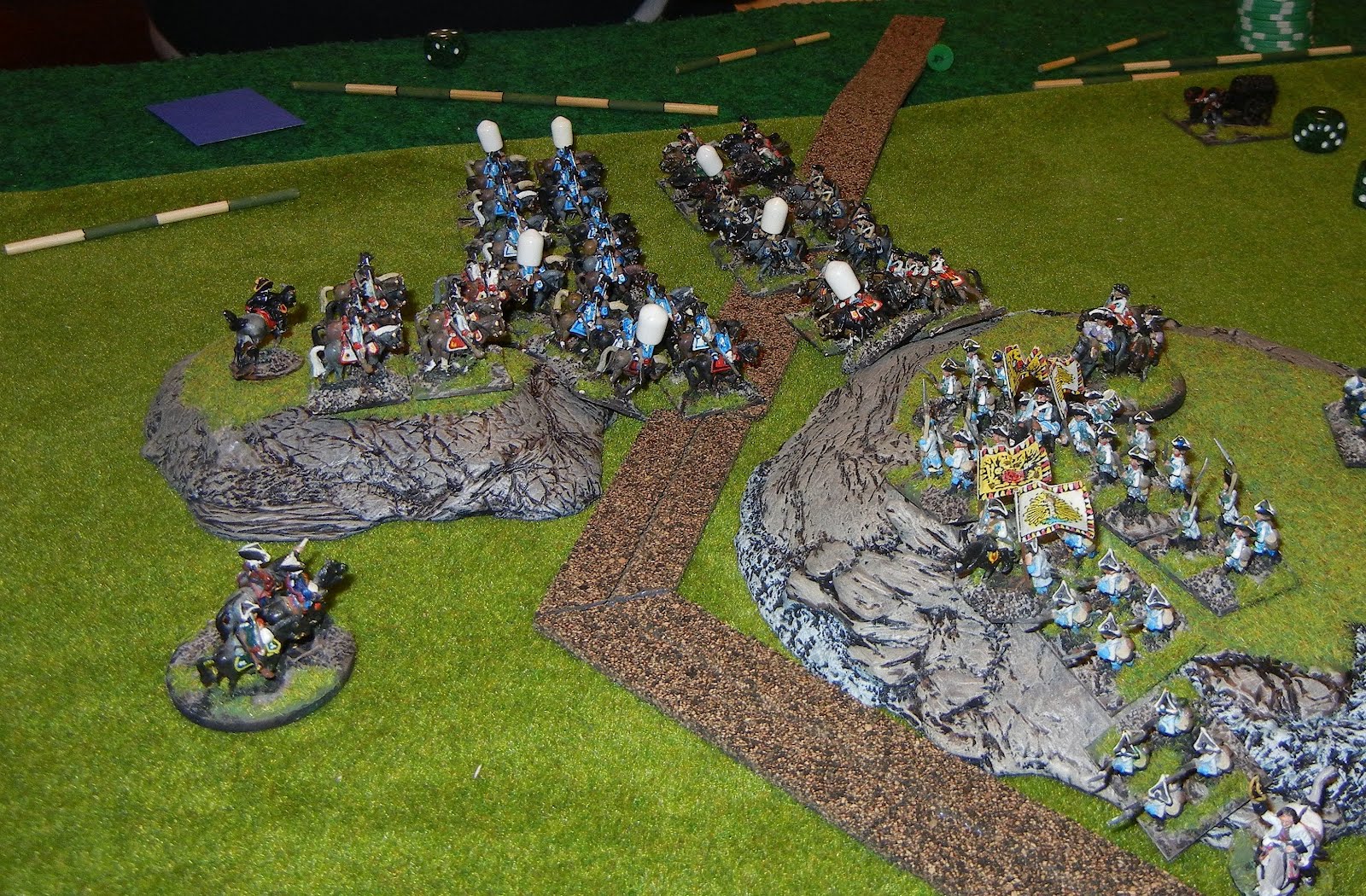 There are two escarpments on the battlefield (thin grey lines at top and bottom of the map). Both are impassable to all troops, except via a road