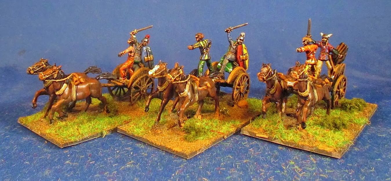I find chariots always a bit fiddly. I love the chariot drivers who are kung-fu fighting. And I'm glad these guys are done. I've also used the figures to do a tutorial on painting 1/72 figures for newbies.