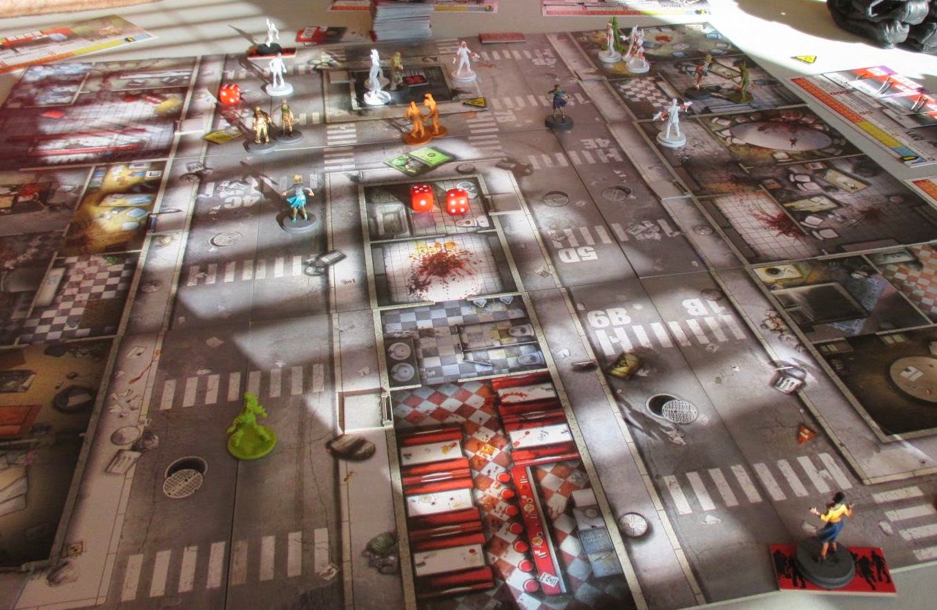 This was one of the better Zombie games I've played--some interesting colour and options. Below, the board, just before things got bad.